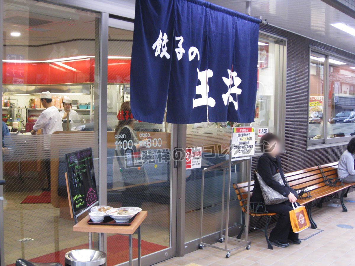 「餃子の王将」は,全国展開している餃子を中心とした中華料理のチェーン店。昭和42年(1967)に京都の四条大宮で開業し,京都市内を中心に店舗展開。昭和49年(1974)に㈱王将チェーンを設立。直営15店とフランチャイズ3店で「早く、おいしく、安く」をモットーにスタートした。現在店舗数は 500を超えていると言われる。