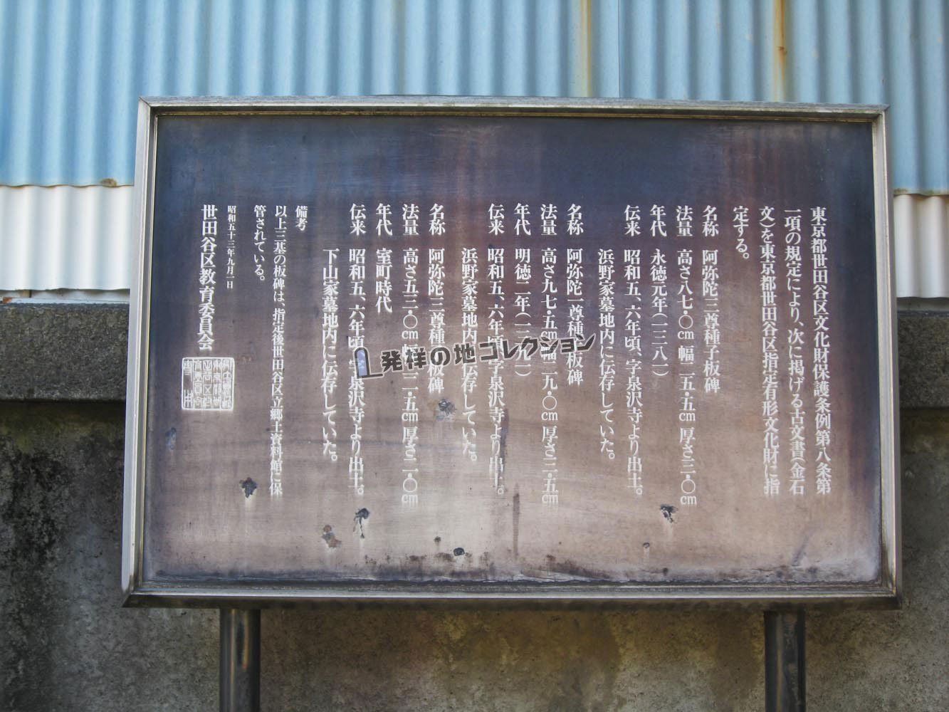 京王線 千歳烏山駅から 東に500m。烏山念仏堂(世田谷区南烏山2丁目23-16)と呼ばれる小さな寺院の入口を入ると,本堂の前に黒い石碑が建っている。