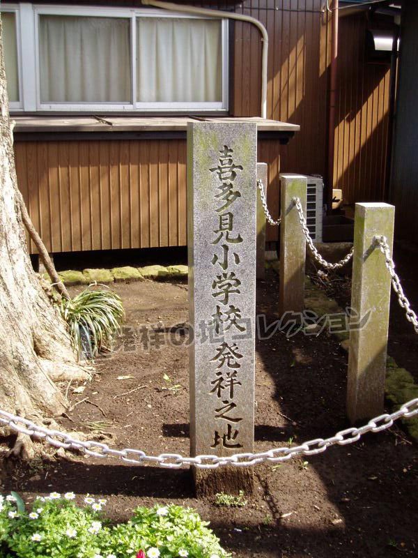 ちなみに 喜多見3丁目にある現在の「喜多見小学校」は, たまたま この発祥碑と同名ではあるが, 昭和47年(1972) に 砧小学校から分離独立した新設校であって, 間接的には発祥地であるものの、直接の関係はない。