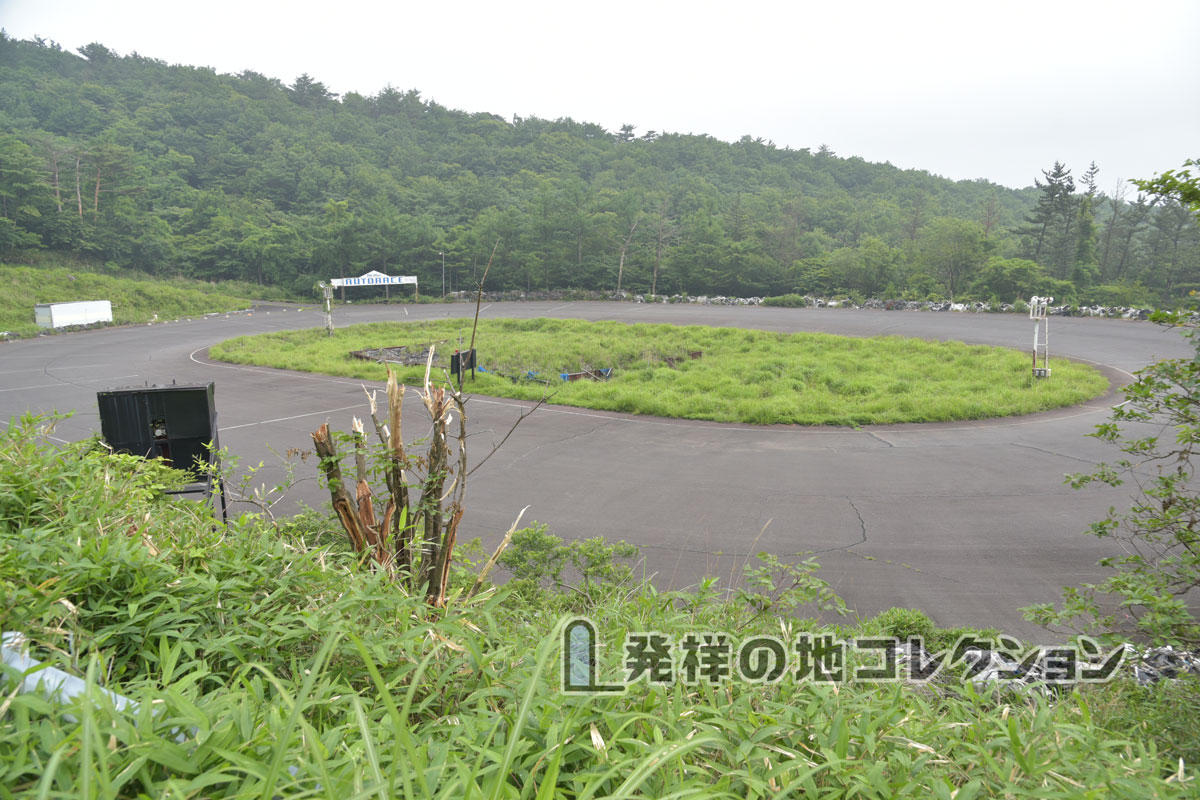 ここから青少年交流の家方向に入り、すぐに逸れる道で林の中の林道をずんずん進むとオートレース場が現れる。