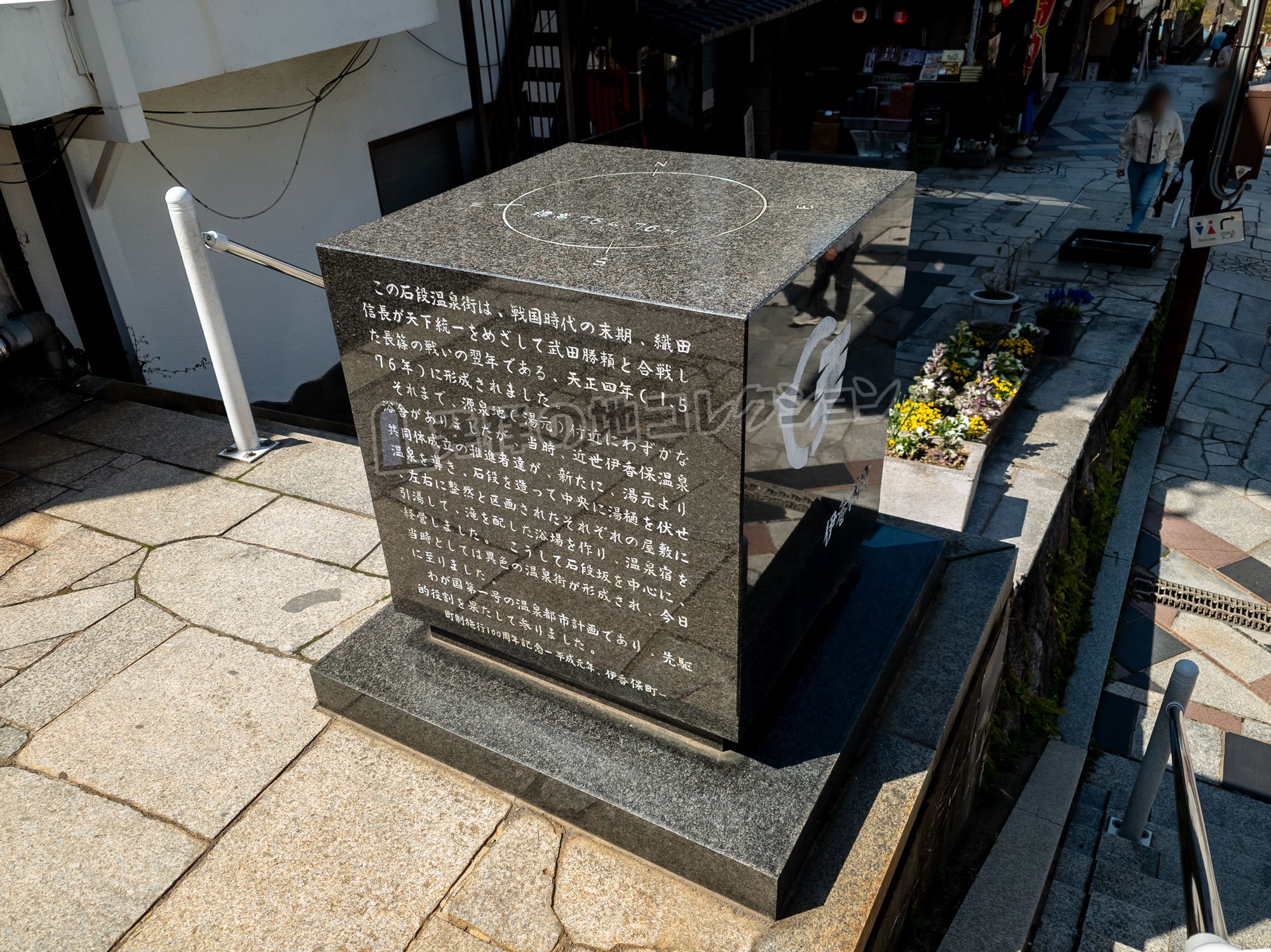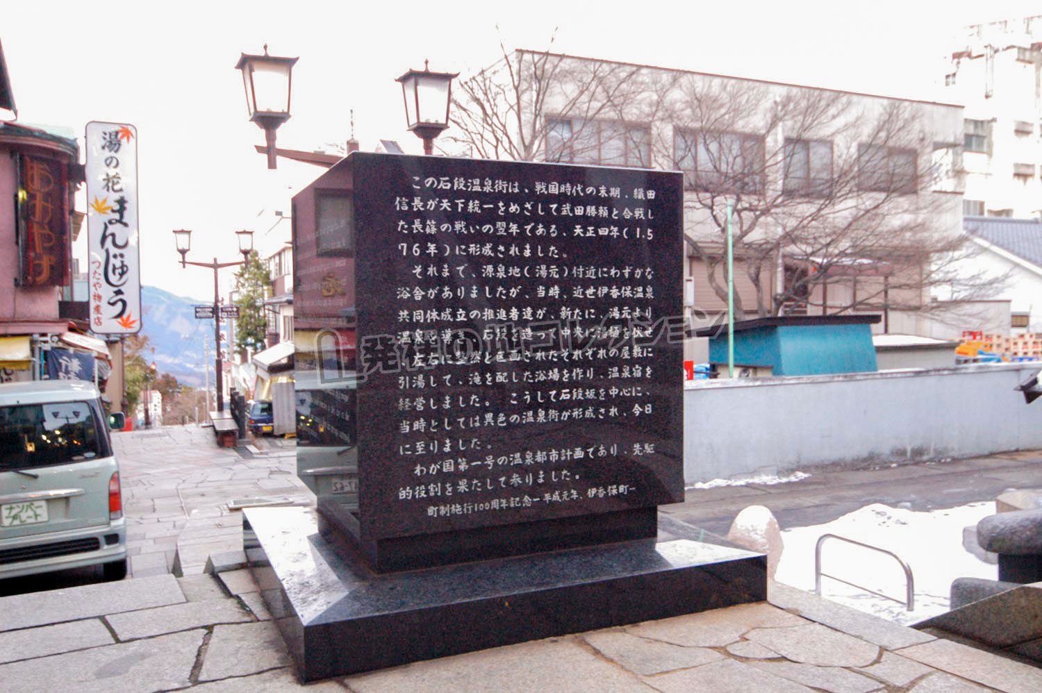 この石段温泉街は, 戦国時代の末期, 織田信長が天下統一をめざして 武田勝頼と合戦した長篠の戦いの翌年である, 天正4年(1576年)に形成されました。