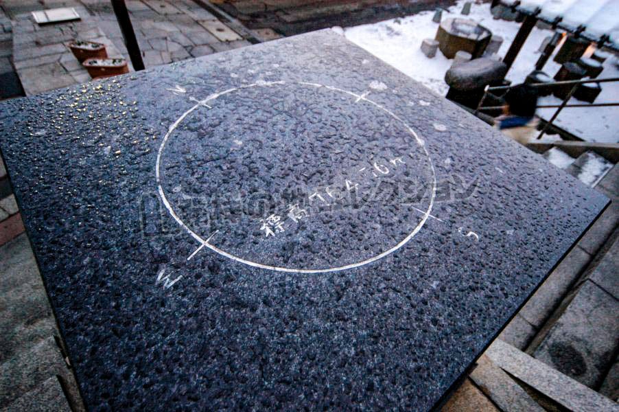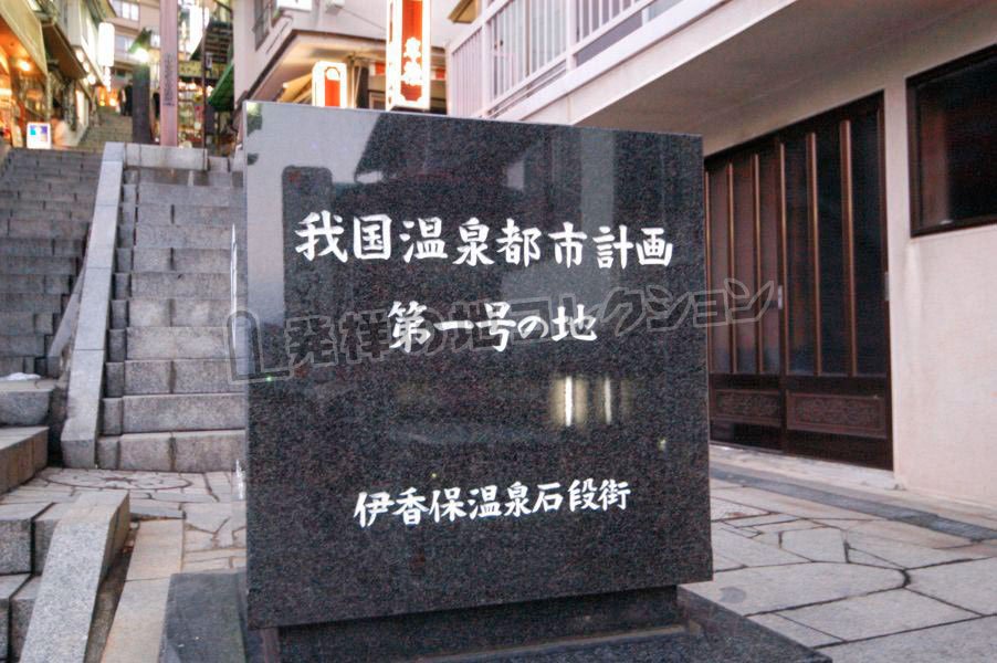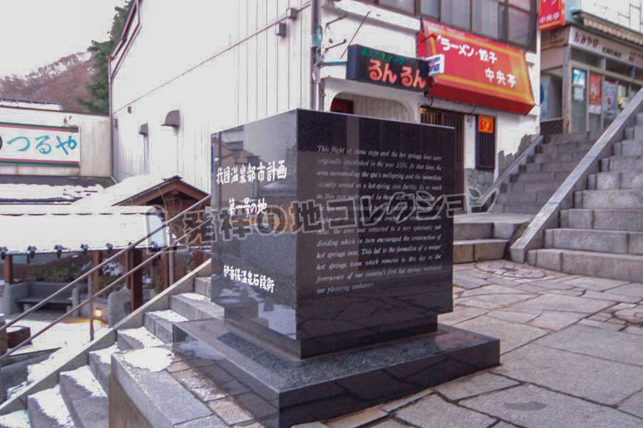 榛名山の東麓にある 伊香保温泉。温泉街の中央に 南の伊香保神社に向って 300m, 360段の石段が延々と続く。石段のほぼ中央に 黒い立方体の石碑が建っている。