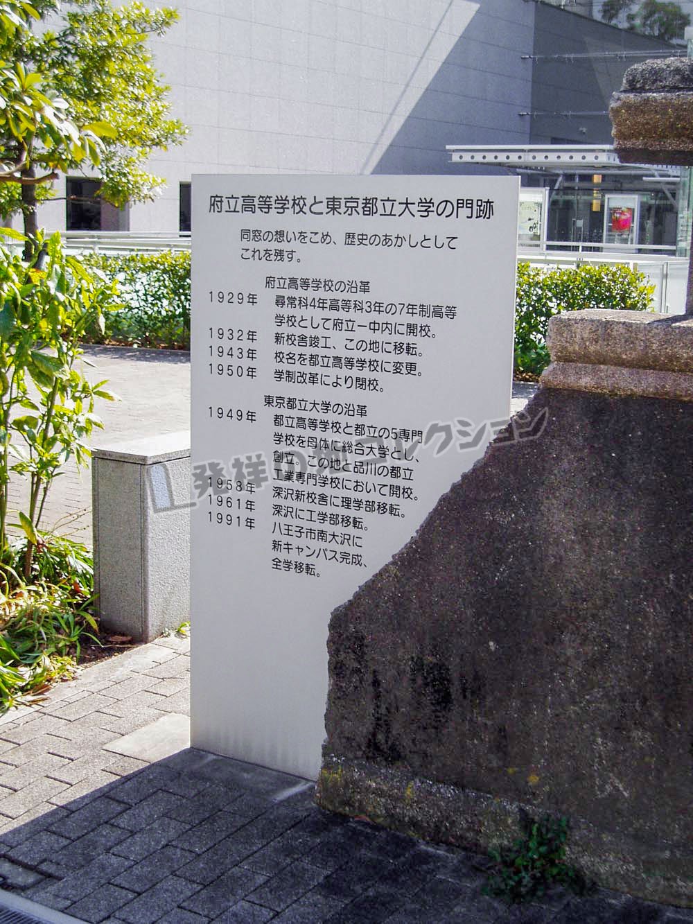 旧 府立高・都立大の門柱の遺構には 沿革が記されている。