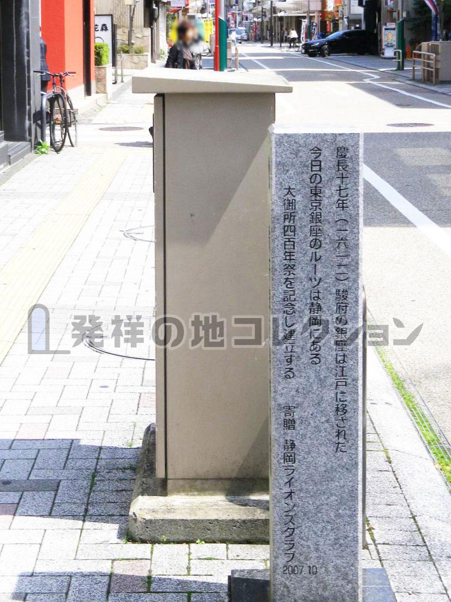 今日の東京銀座のルーツは静岡にある大御所四百年祭を記念し建立する 寄贈 静岡ライオンズクラブ