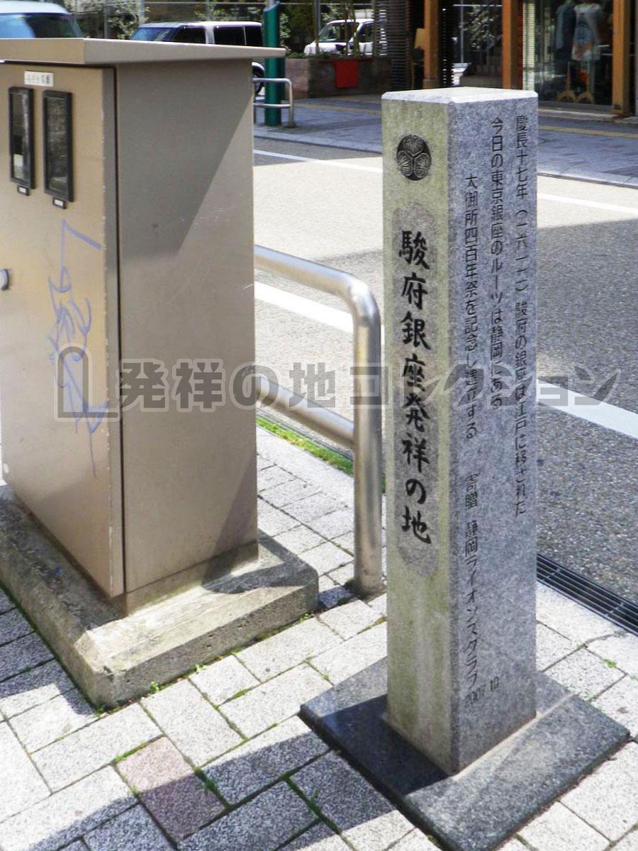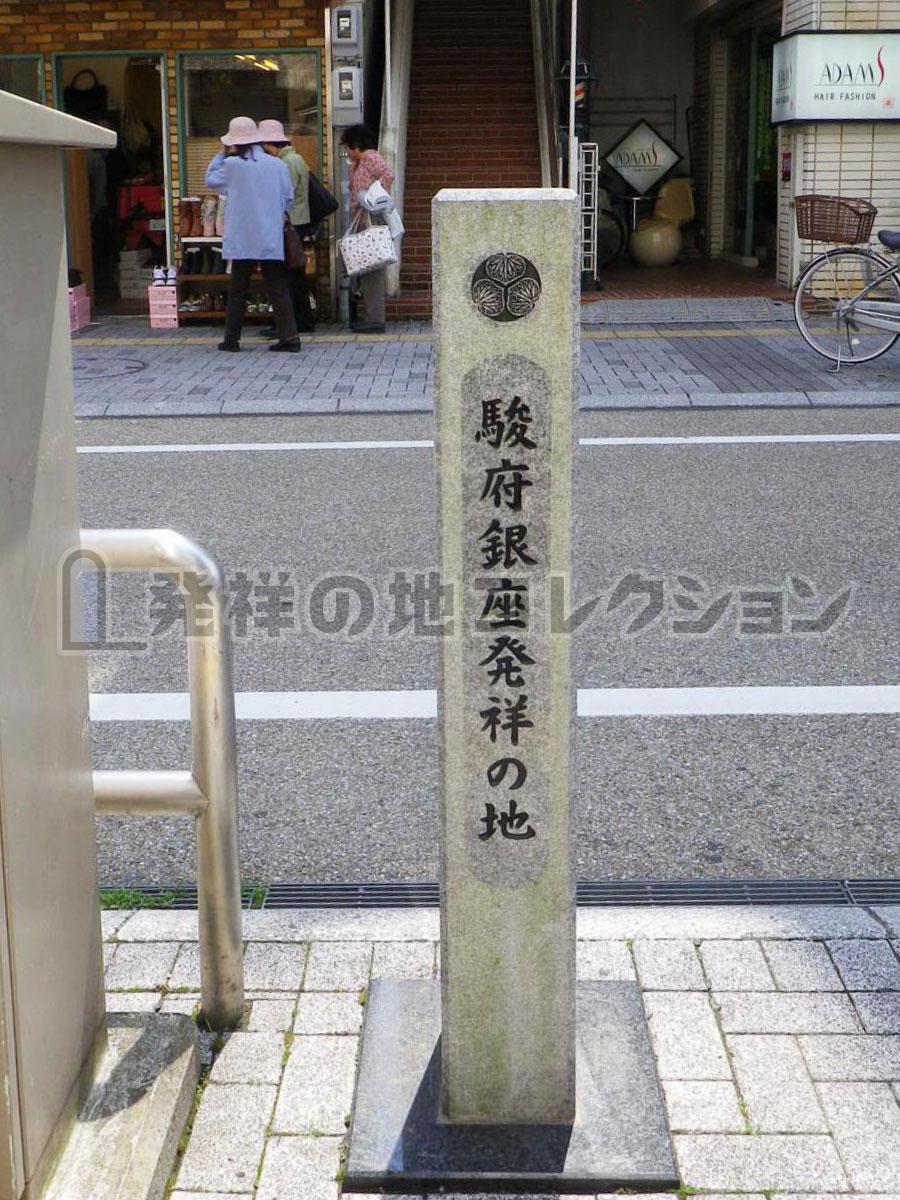 駿府の銀座は 慶長11年(1606) に 徳川家康が駿府城に入った際に、駿府城の蓄財としての銀貨を鋳造する目的で設置された。町名の“両替町”は 銀座の業務として銀地金を買い入れ銀貨と引き換えること両替業務から来ており、この銀座周辺には多くの両替商が集まっていた。
