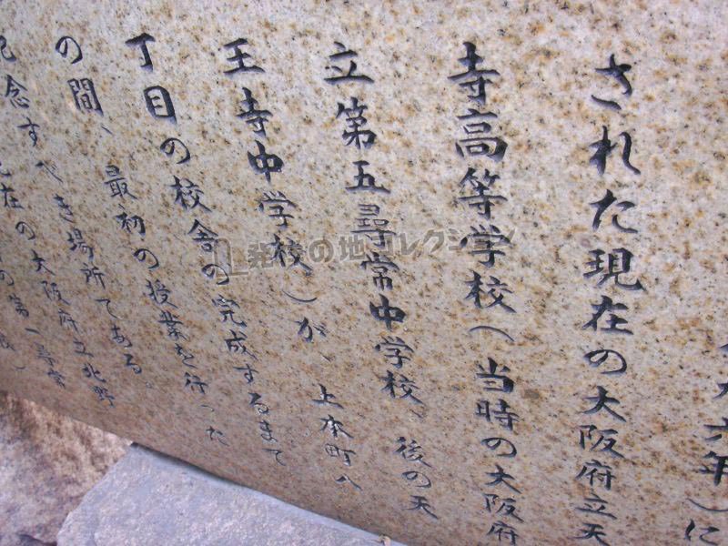 ここは 天王寺高校(大阪府第五尋常中学校)が開設された際に 一時的に学校が置かれた場所。