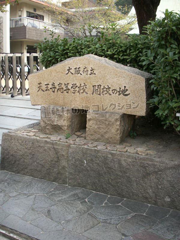 近鉄 上本町駅の西 600m。下寺町交差点の南に浄土宗 大蓮寺(天王寺区下寺町1丁目1-30)がある。寺の山門を入ってすぐに「天王寺高等学校開校の地」と書かれた横長の碑が建っている。
