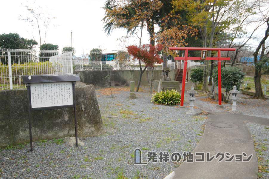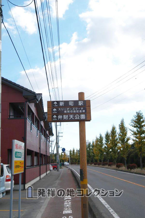 高崎線 新町駅から北へ約700m。旧中山道が温井川を渡る弁天橋の脇に弁財天を祀った祠のある小公園があり, 道路を挟んで向かい側に自然石を台座にした黒御影石の石碑が建っている。