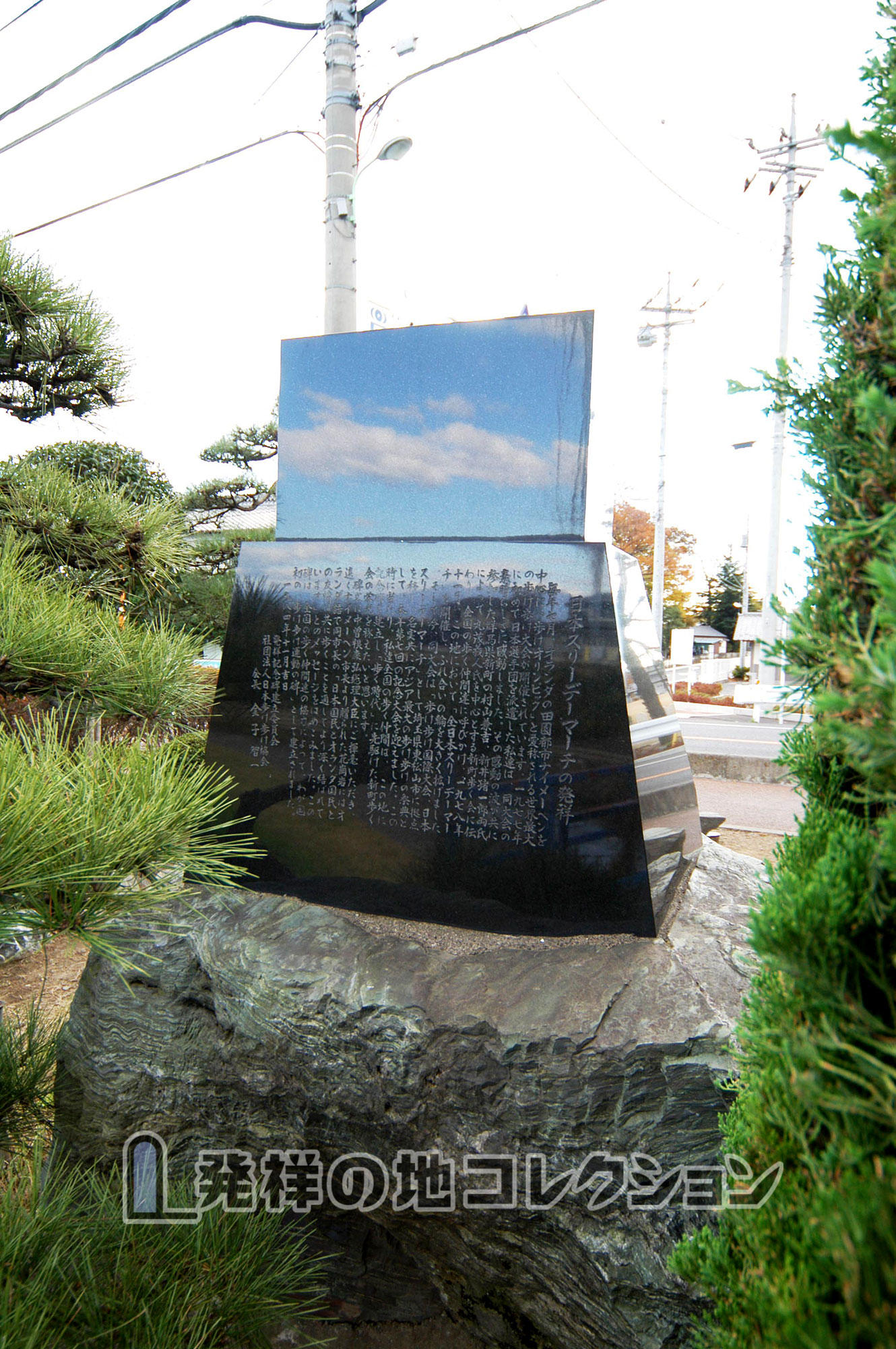 そして今、同大会は「歩け歩け国際大会、日本スリーデーマーチ」として埼玉県東松山市に拠点を移し、名実共にアジア最大の歩け歩けの祭典として、本年第7回の記念大会を迎えました。この時に当たり、私達全国の歩く仲間は、この地に記念碑を建立し「歩く時代」に先駆けた新町歩く会の栄光を称えたいと思います。