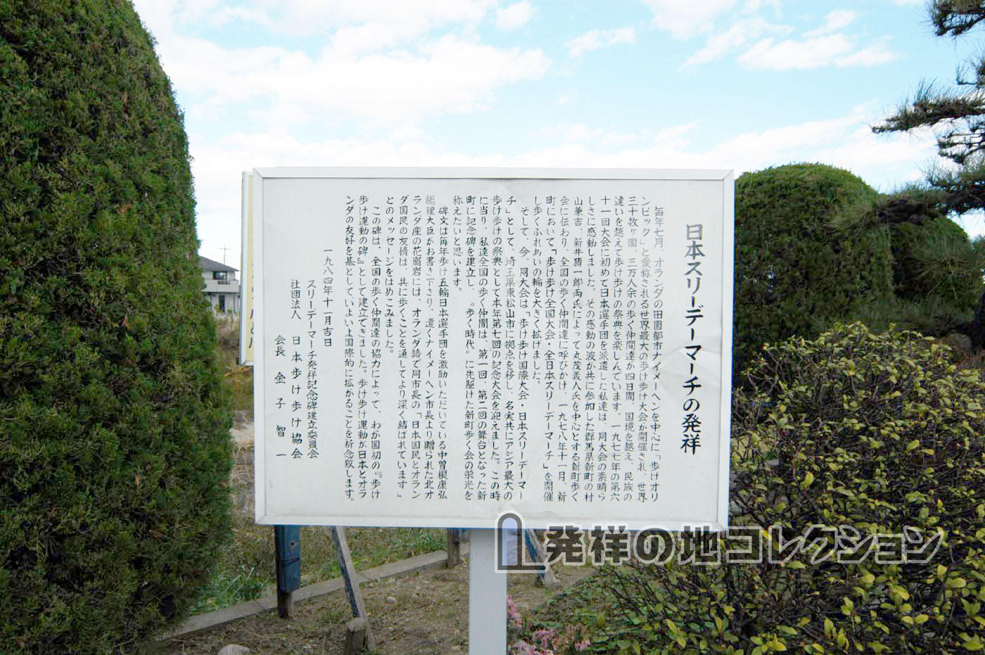 下記の碑文にあるように, 日本のスリーデーマーチは オランダ・ナイメーヘン市で行なわれる「国際フォーデーズマーチ」をお手本として 始められた。
