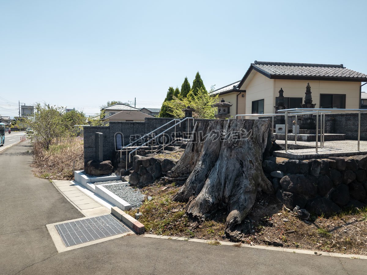 なお、行人塚の大ケヤキはとくに行政による記念物的な指定も支援も無かったようで、令和2年(2020) 1月に伐採され、すっきり明るくなった。根元は祈念碑のように残され、防腐処理され、往年の姿を想像させる。